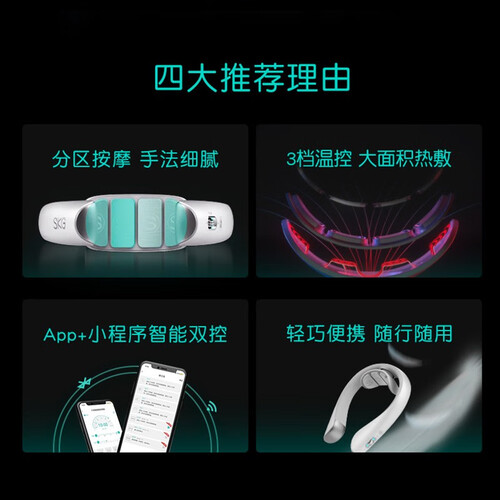 模式和力度通过一键即可轻松调节,还可通过“未来穿戴”小程序下载更多模式。重量仅94g,佩戴按摩没有沉重感,轻松享受按摩。