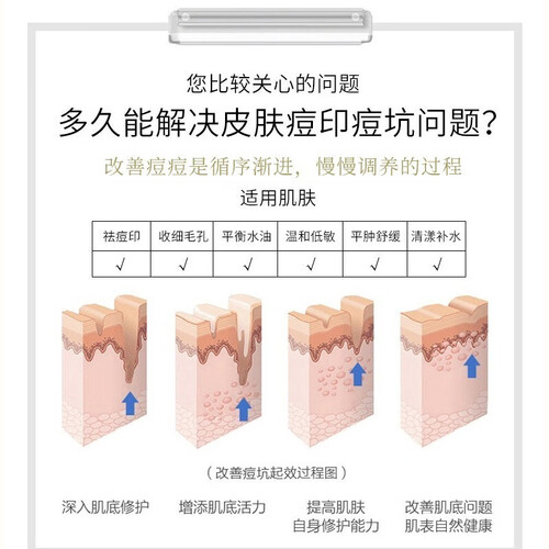 蕴含了丰富的金银花成分,能够有效地平衡肌肤的油脂分泌,减缓痘痘的生成。添加了多种天然草本成分,快速补水。