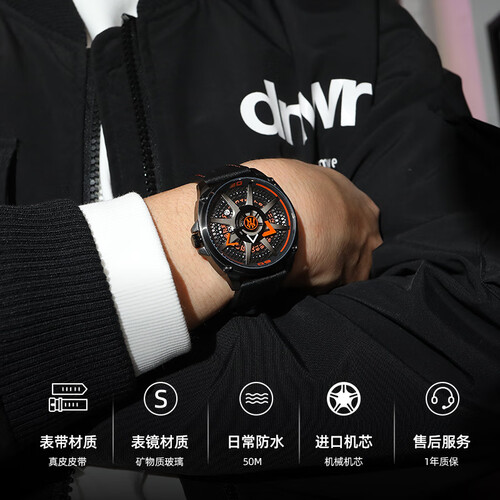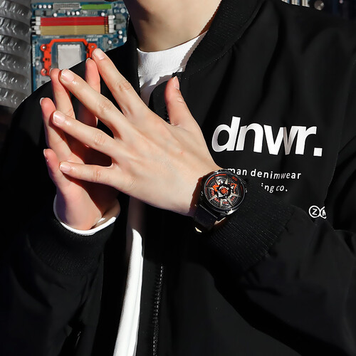 表身拥有多层次设计,呈现炫酷镂空造型,展现浓厚工业风,酷感十足。严选高硬度金属材质,精工打磨,呈现出众质感。