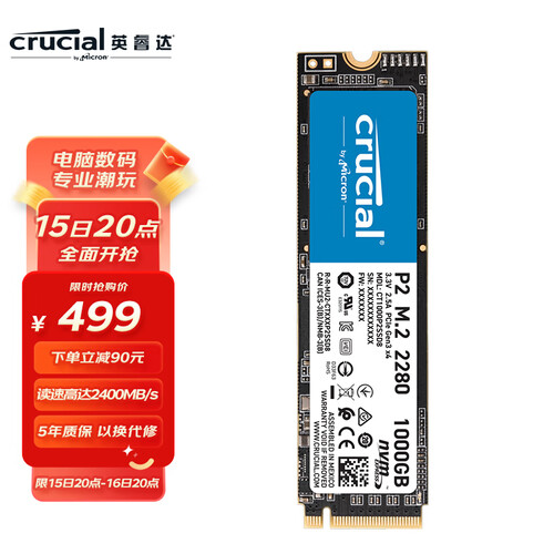 英睿达P2SSD固态硬盘,大幅度提升电脑的存储空间和运行速度,缩短加载时间,拥有强大的性能和容量,安装方便。