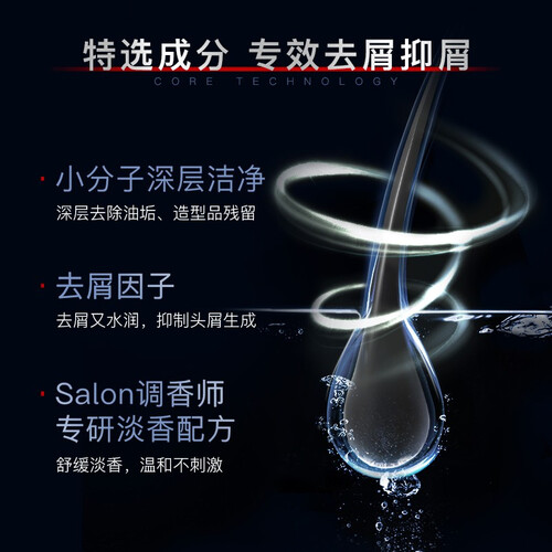 含去屑因子,可有效抑制头屑生成,搭配上小分子深层洁净,发丝干净又没有油脂污垢。专研淡香配方,温和不刺激,洗后清香迷人。