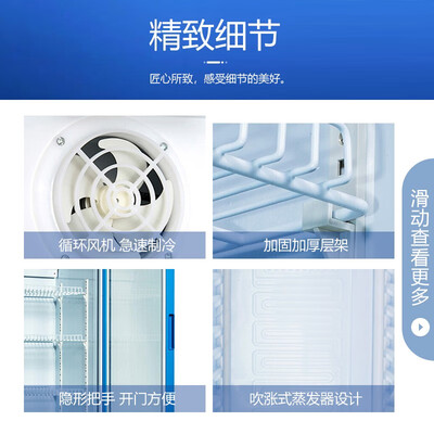 内置涡轮多频风机设计,实现快速制冷,告别长时间等待。内部添加LED灯效,晚上查找物品更觉方便,不易出错。