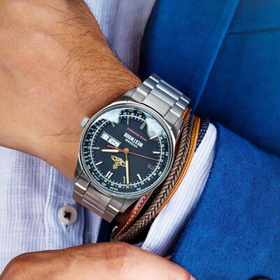 经典三针造型设计,从微小处展现细节品质。加上精致按扣设计,佩戴起来更加方便,凸显潮流与时尚。