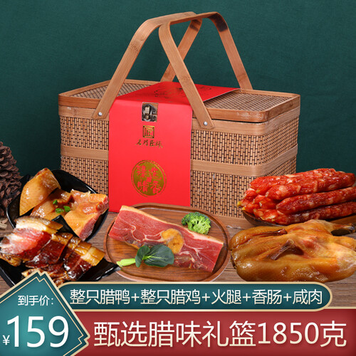 里面含有腊鸭,腊鸡,火腿等不同美味,带来不一样的味蕾体验。采用竹篮包装,抗压性好,结实美观,带来更淳朴的自然气息。