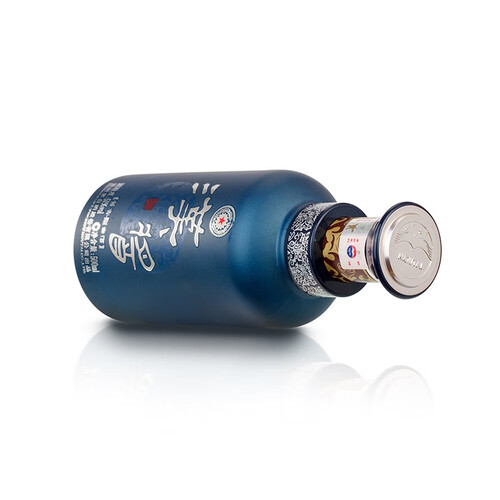 选用中国传统色彩玻璃蓝色为主铂金色为辅,象征着青出于蓝胜于蓝。瓶颈分为金棕和蓝白两段式,彰显潇洒大气风格。