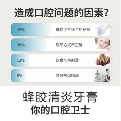 内含三七提取物,对牙齿有消炎、镇痛的效果,搭配蜂胶提取物,减少牙龈出血。碳酸钙提取物,可以清理沉积牙垢。