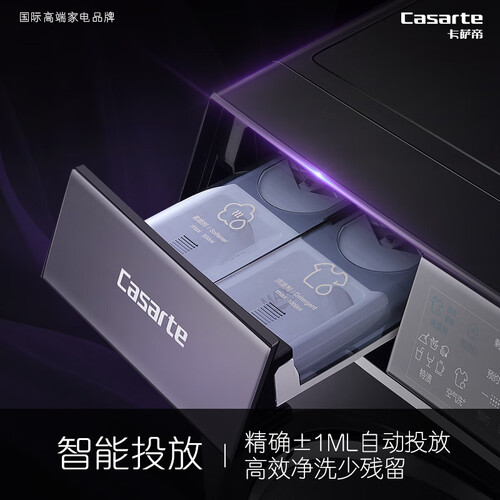 具有雾化空气洗功能,微米级水分子深入纤维深处,在除菌除螨的同时,也能保持衣物的柔软蓬松。AI智能洗衣,自动匹配洗涤程序。