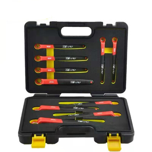 工具箱内部专设卡位凹槽,工具固定位置,防止散落丢失。手柄采用绝缘材料包胶设计,让您的工作更安全放心。