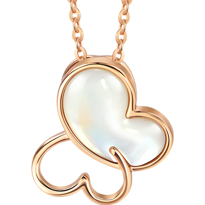 采用玫瑰金搭配优质贝母的设计,独特的造型,散发出优雅迷人的气质。纤细的链条设计,佩戴时可以优化颈部线条,时尚大方。