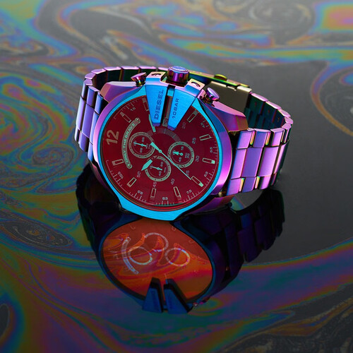 偏光表盘设计,颜色对光线角度而变化,与紫色钢带相互搭配,让您秀出酷炫个性风格。优质石英机芯,走时准确误差小。