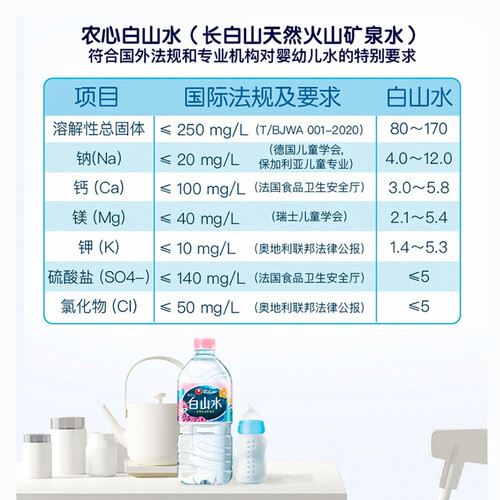 低钠淡矿饮用水,在补充人体所需微量元素的同时,呵护婴幼儿娇弱脏器,让宝宝饮用更放心。采用德国尖端设备生产,保障新鲜安全。