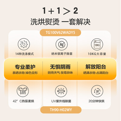 洗烘分离,既能搭配使用,也能单独运行,专机专用满足不同需求。银离子遇水释放,在衣物和内筒表面形成保护膜,守护穿衣健康。
