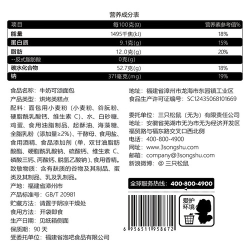 三只松鼠 乳酸菌小伴侣面包