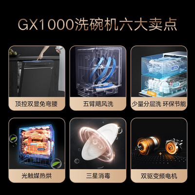 采用星耀灰面板搭载覆膜工艺,无惧指纹油污,清洁方便不费力,历久弥新。五臂飓风喷臂,清洁彻底无死角,高效清洁。