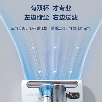 内置智能尘螨感应系统,尘螨一目了然,告别盲目除螨。双杯左除尘右过滤,释放洁净空气。搭载大容量锂电池,一次搞定全屋尘螨。