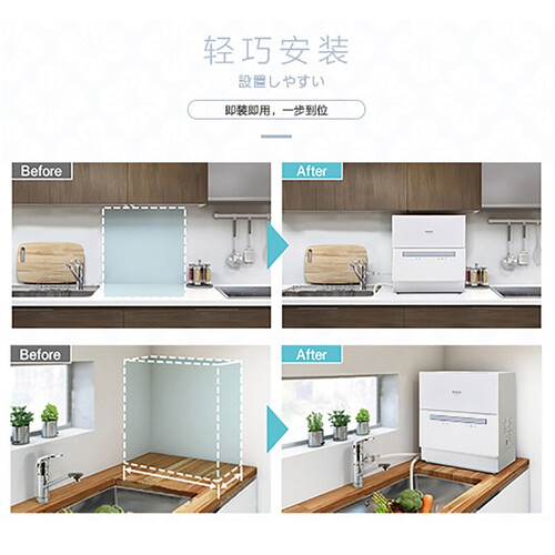 高压喷射,水流更强劲,可快速均匀冲刷碗具,快速去污不残留。独立加热烘干,让餐具、内腔长久保持干燥,可安心储存。