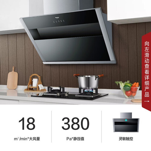 805毫米宽屏拢吸,增加拢烟面积,油烟不外溢空间焕然一新。国标一级能效,在强力排烟的同时消耗电量低,更加节能环保。