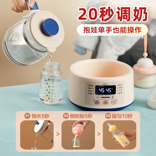 这款调奶器采用72小时智能恒温设计,半夜起来调奶时,也有合适的温度,为宝妈减轻冲奶负担。同时配备柔和小夜灯,既温馨又能照明。