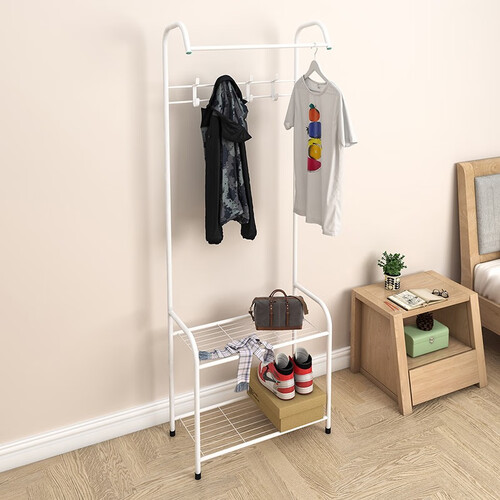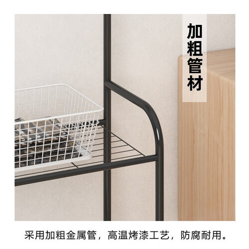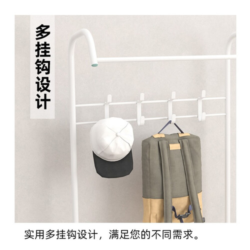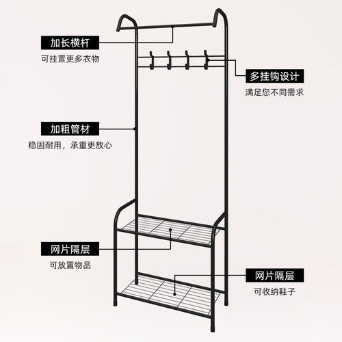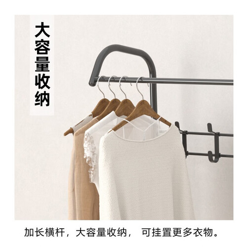 使用加粗金属管,再经过高温烤漆处理后,具有防腐蚀性。设计加长横杆,可以挂更多衣服,找时一目了然,很省心。