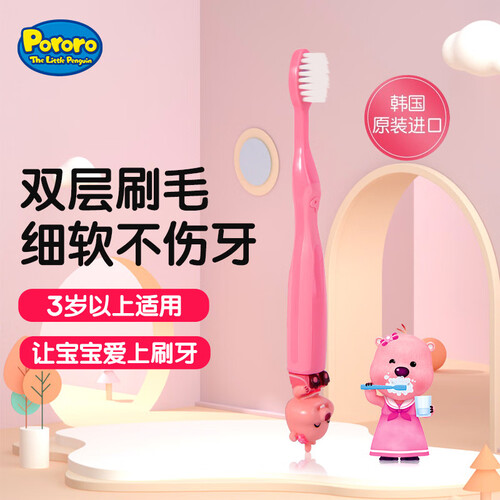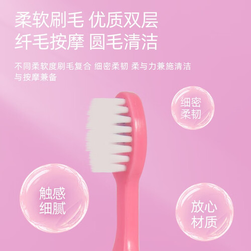 萌趣可爱的卡通造型,激发宝宝好奇心,有助于培养良好的刷牙习惯。两种不同柔软度的刷毛组合,兼具柔与力,清洁细致无残留。