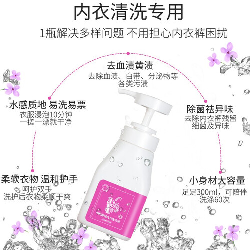 内衣清洗专用的洗衣液,一瓶就能轻松解决多种清洁难题。水感质地易漂洗,抑菌祛异味,洗后柔顺干爽。