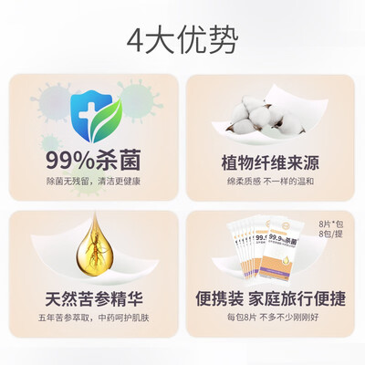 苦参萃取精华,源自天然的营养素,沁润肌肤细滑柔嫩。采用植物纤维的原材,质感绵柔亲肤,可反复擦拭不易变形,触感更舒适。