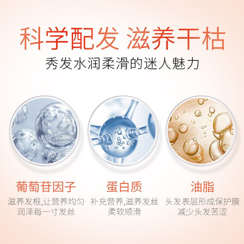 对抗干枯的洗发水,留住水分,深入滋养,改善干枯区域。润泽每一根发丝,令秀发重现亮泽,每一天能自信出街。