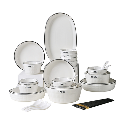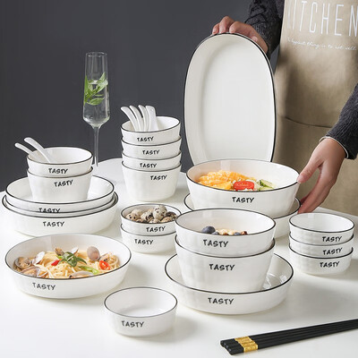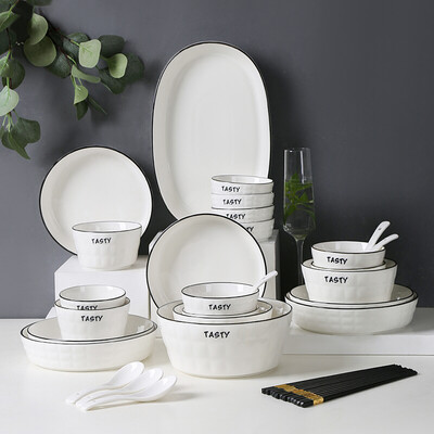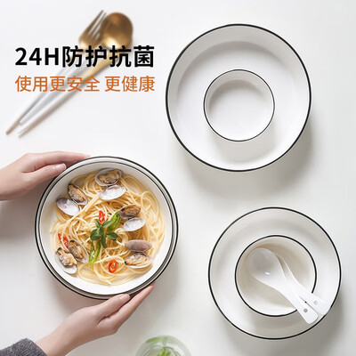 白瓷与黑色描边结合,线条流畅,增加时尚感,百看不腻。利用釉下彩工艺加工,避免食物与绘层直接接触,使用更健康。
