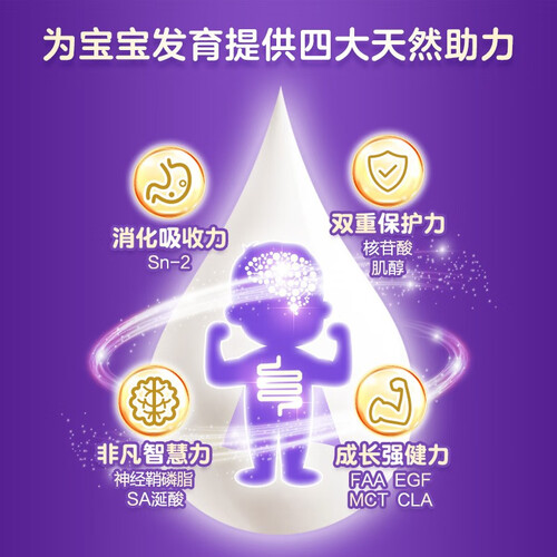 全脂奶天然活性营养更健康,能保留羊奶原始的营养,优质奶源品质更高;同时添加DHA&AA等,有助于宝宝茁壮成长。