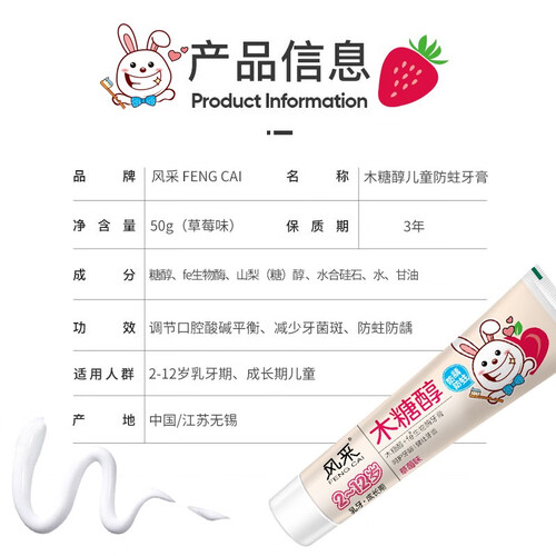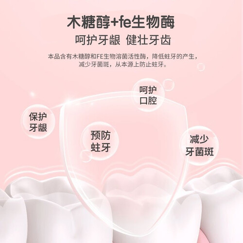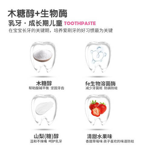 食品级的儿童牙膏,含有fe生物酶,调节孩子口腔中的酸碱平衡。牙膏膏体温和,无添加色素等添加剂,保护孩子的牙齿。