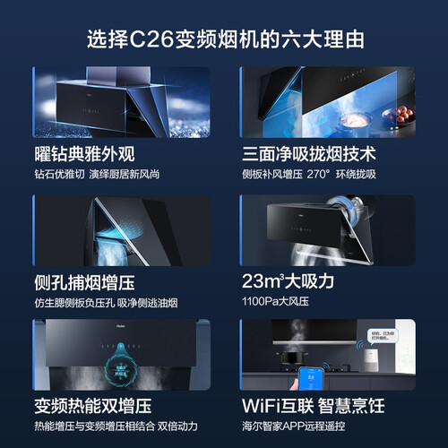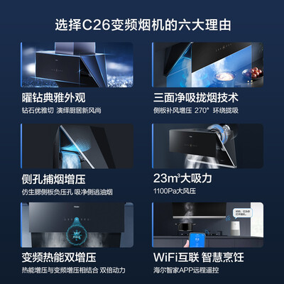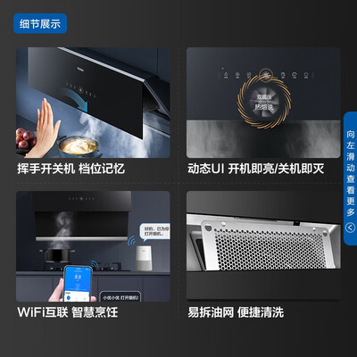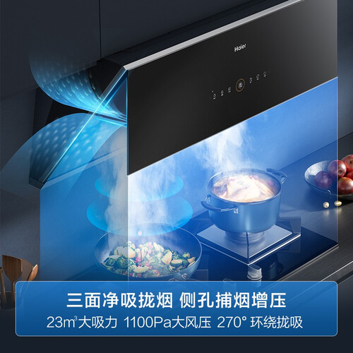 烟机采用三面净吸拢烟技术,270°环绕拢吸,瞬间去除油烟,厨房清新舒适。燃气灶达到一级能效标准,节能省气。