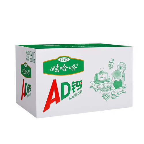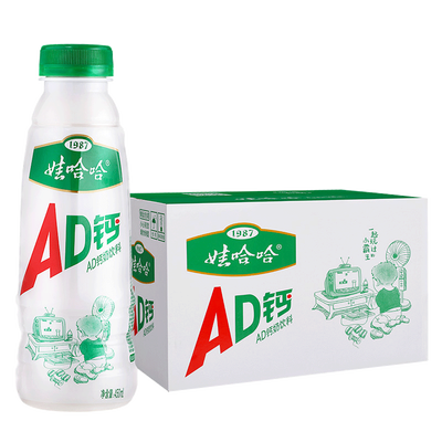 娃哈哈AD钙奶饮品,采用钙质吸收的上佳载体,牛奶为基础,又辅以维生素18和维生素D,促进钙质吸收,增强人体免疫力。