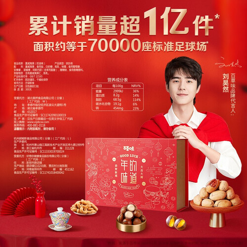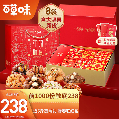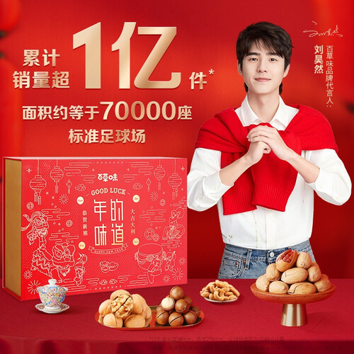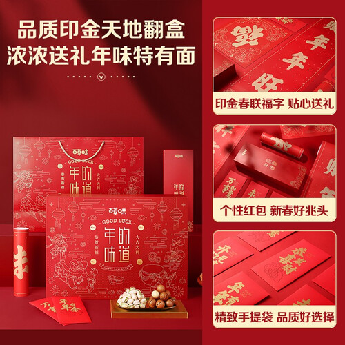 全新设计“年的味道”礼盒包装,简约大气,喜庆感满满,节庆礼赠亲朋很有档次;礼盒中共有15袋坚果,种类丰富,好吃不停。