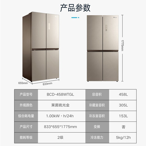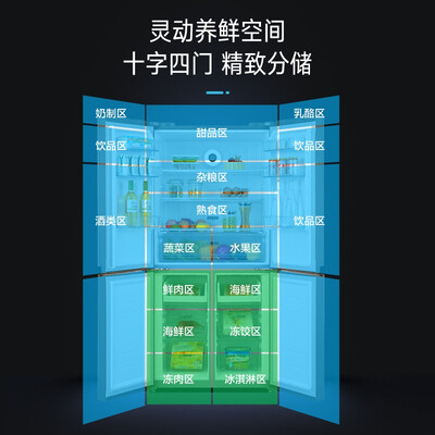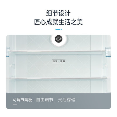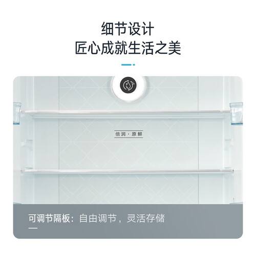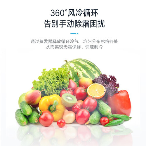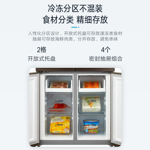 360°风冷循环,均匀分布在冰箱各处,实现无霜保鲜。精细分储,开放式托盘可以存放速冻食材,避免串味。