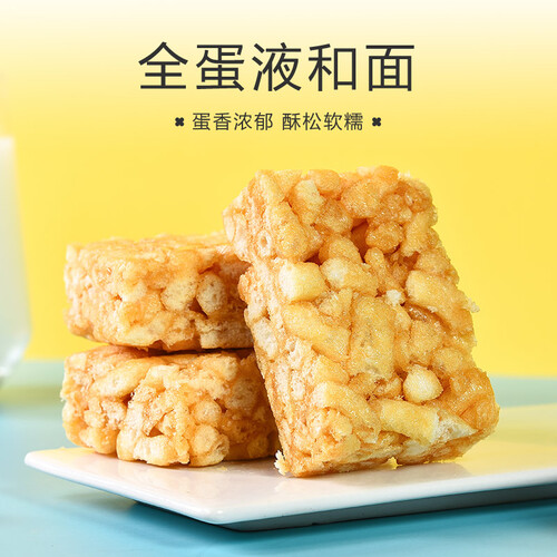 新鲜鸡蛋、全脂乳粉和优质小麦粉以独特比例融合出香软酥松口感,配上白芝麻和麦芽糖,蛋香、甜香和坚果香交融。