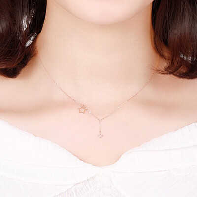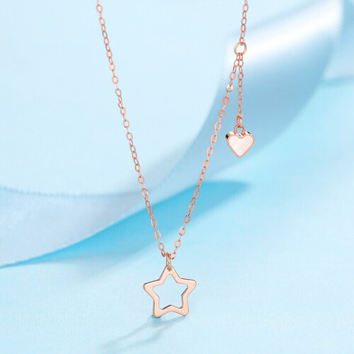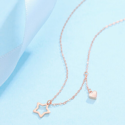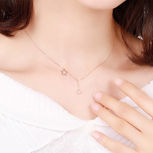 温柔浪漫的玫瑰金色项链,佩戴后可以凸显肌肤白皙。爱心与星星搭配,充满少女感,是送女友的好选择。
