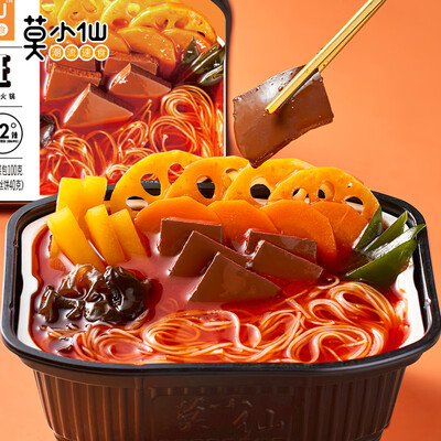 牛油底料,搭配新鲜的猪血,Q弹美味没有血腥味,鲜香扑鼻。再搭配川粉,口感爽滑软糯有嚼劲,在家就可以吃到美味火锅。