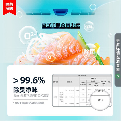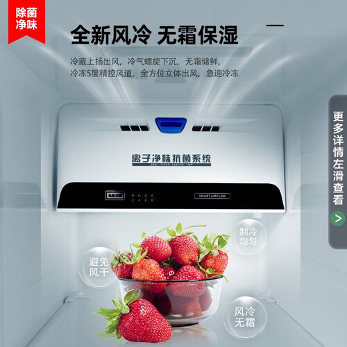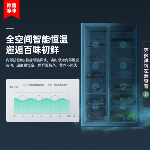 内置独立净味模块,有效吸收并分解异味分子,更好的除臭净味。搭载8枚智能感温探头,使其能更恒温的保鲜食材,营养不流失。