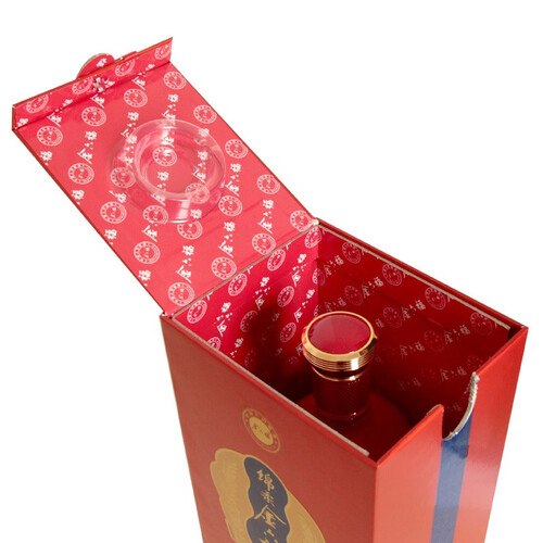产自中国黄金酿酒带,生态酿酒基地,酒质更醇和,品质更高。酒体纯净透亮,香气馥郁优雅,正红包装瓶身,十分喜庆。