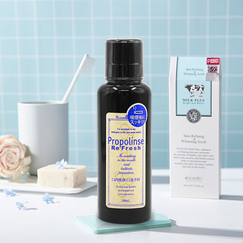 主打改善烟渍的漱口水,十分适合男士使用,带来清新口气和焕白牙齿的效果。加入蜂胶成分的它,轻松带走污垢。