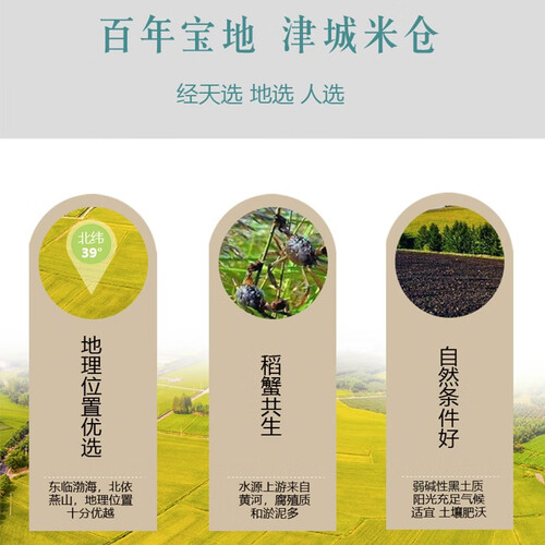 产自津城宝地,依山傍海的环境和碱性黑土质,蕴育着稻米的优良生长。以充足的日照积温,使米粒颗粒浓醇,蒸出来的滋味喷香可口。
