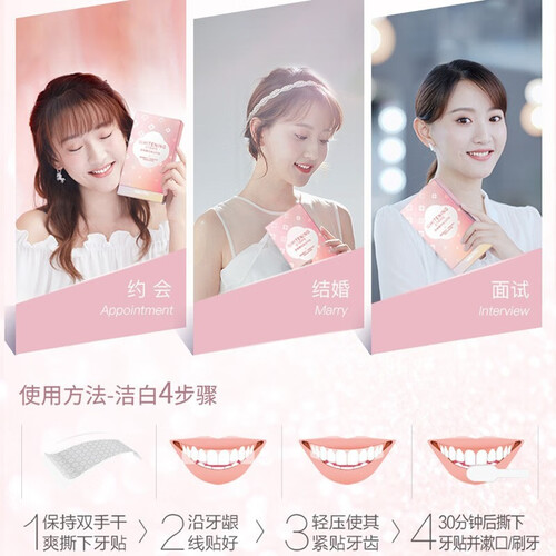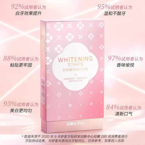 牙贴中充满了清香的樱花香气,贴在牙齿之上令整个口腔都气味清新,含有木瓜蛋白酶成分,可较好去除牙齿色素残留。