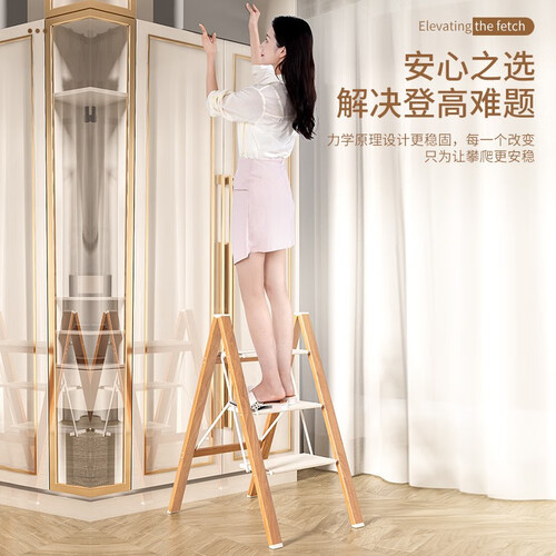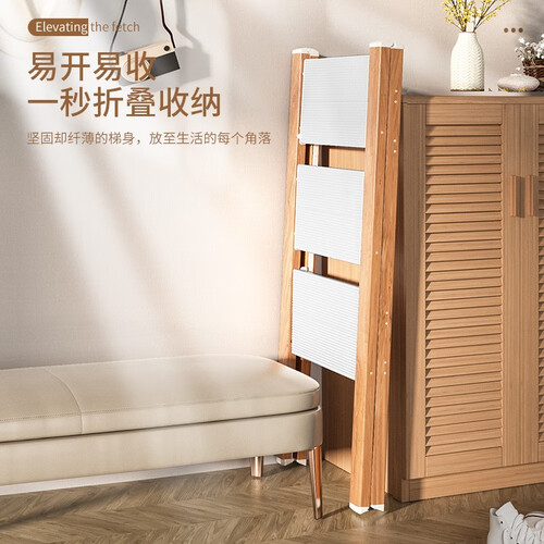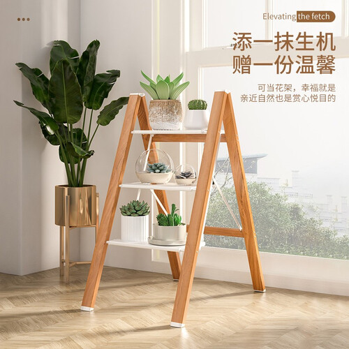 易开易收的三步梯,折叠后不会占用太大空间,不仅能作为登高梯使用,还可充当书架、鞋架、花架,实用性佳。