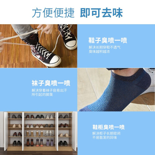 独特倒喷设计,可深入穿戴任何角落,祛味效果看得见;小巧便携设计,可放入随身包和口袋中,外出脱鞋拒绝尴尬发生。