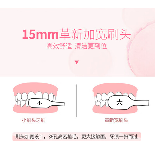 加宽的刷头,增加接触面积,更好地去除牙渍,达到深入清洁的效果。柔软的刷丝,能够轻柔地呵护你的牙龈,不易出血。
