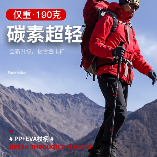 高密度泡沫材质的手柄,符合人体工程学设计,吸汗防滑,能够带来舒适的持握体验;可拆卸的杖尖套和雪托,能轻松应对多种环境。