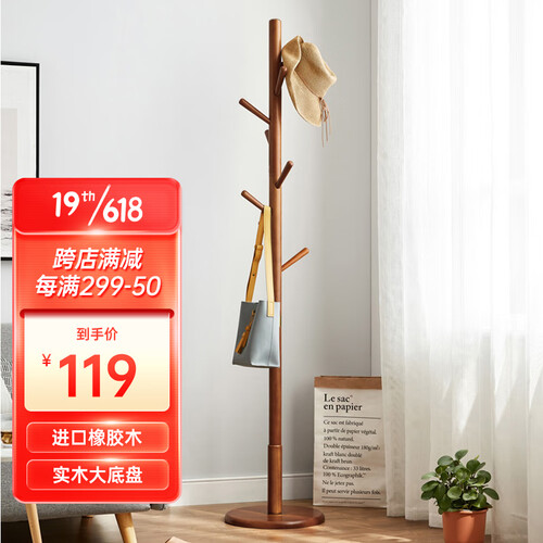 越茂原木色落地立式简易衣帽架