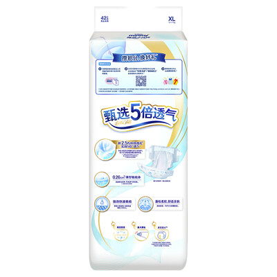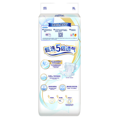 甄选5倍透气,2.5万环绕微孔,给予宝宝肌肤微风拂过般的舒适;0.26cm薄型吸收体,轻薄自在,带来透气穿着感。