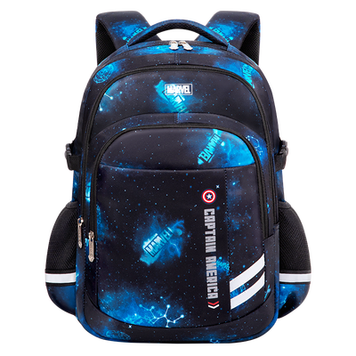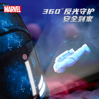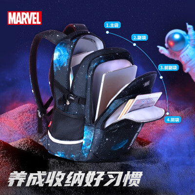 表面星空元素,视觉冲击力强,炫酷造型。曲线设计肩带,背负缓震,保护儿童肩部和背部。厚实柔软面料制作,外观挺括有型。