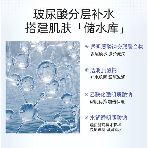 含有玻尿酸成分,对肌肤进行深层次的补水,改善皮肤干燥的问题。用后会建立酵母多糖水屏壁,增加肌肤的吸收能力,营养更好进入。